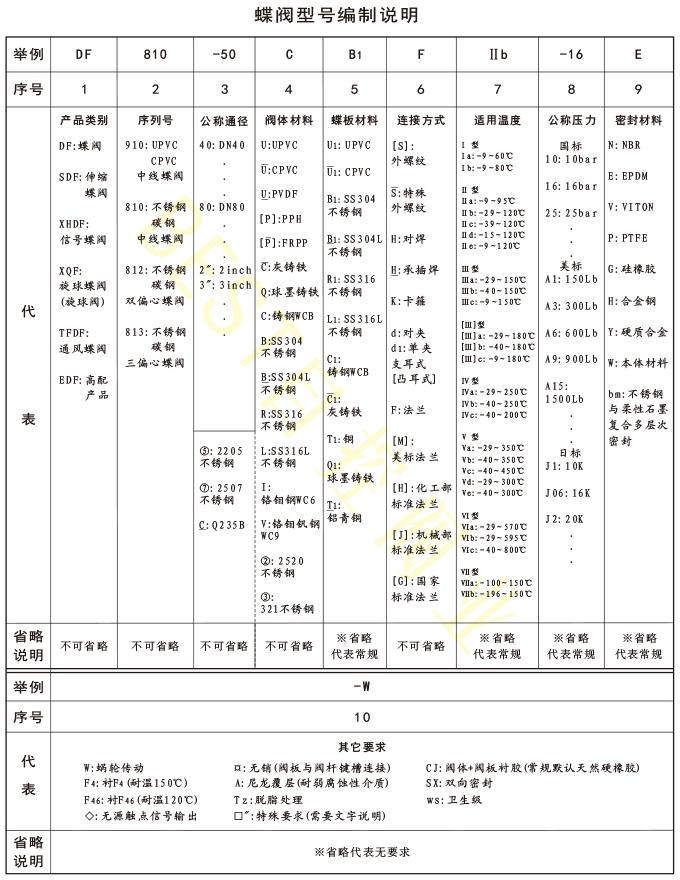 蝶阀型号编制说明