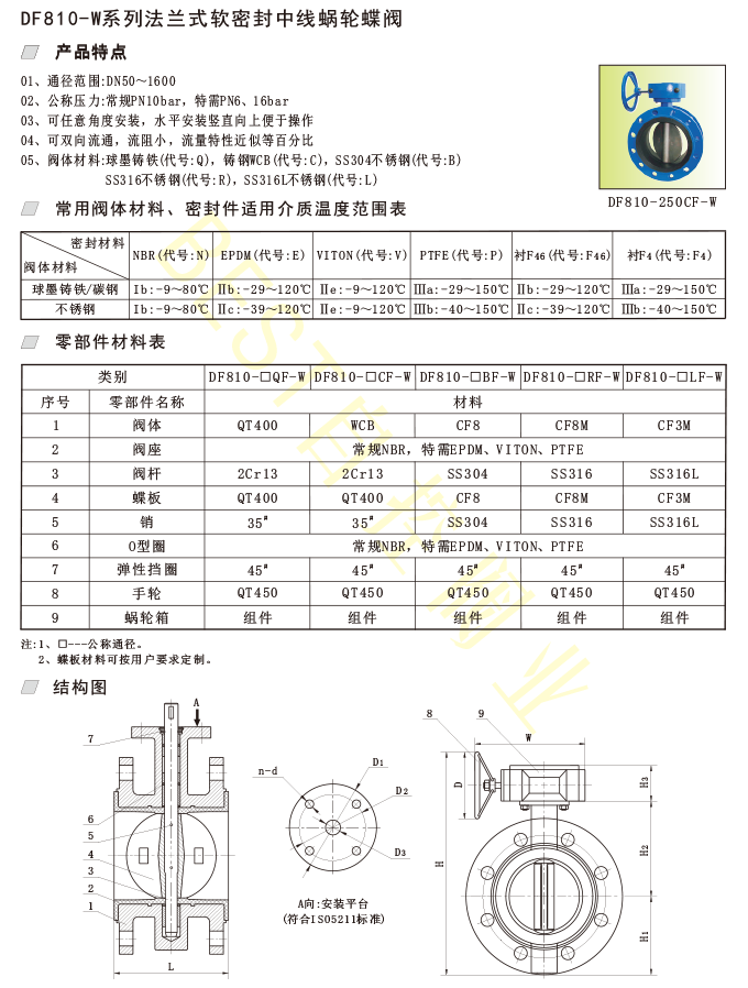DF810-W系列法兰式软密封中线蜗轮蝶阀