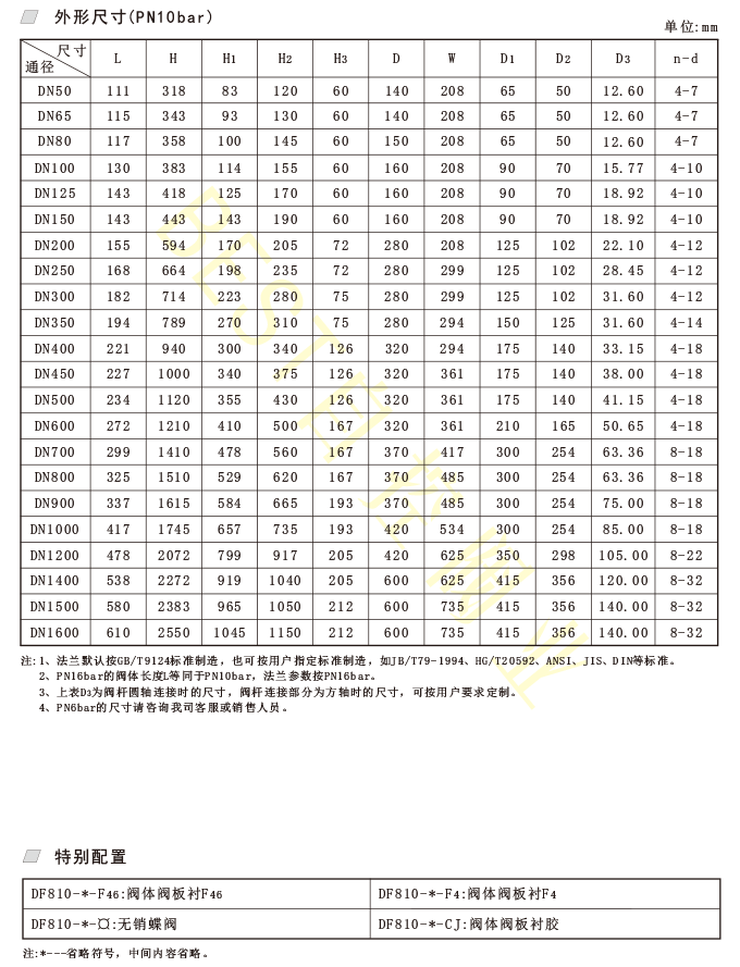02、公称压力:常规PN10bar,特需PN6、16bar