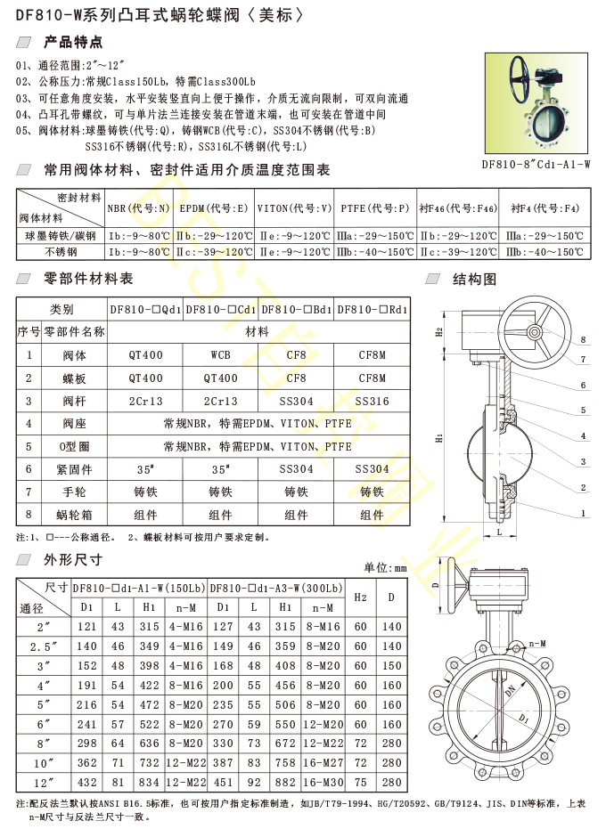 DF810-W系列凸耳式蜗轮蝶阀〈美标〉