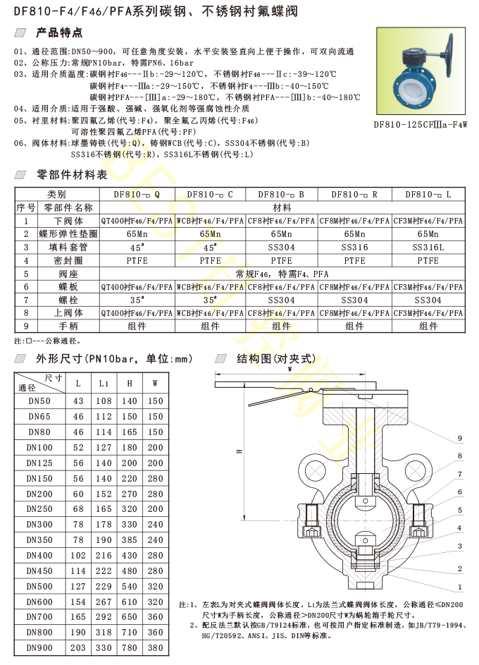DF810-F4/F46/PFA系列碳钢、不锈钢衬氟蝶阀
