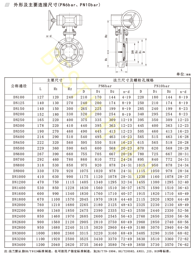 02、公称压力:常规PN10bar,特需PN6、16bar