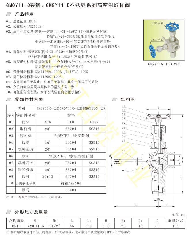 08、本阀既可用于截止,也可用于取样,具有一阀两用的功能