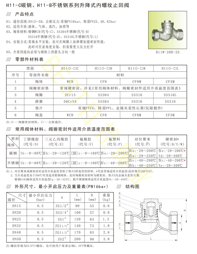 H11-C碳钢、H11-B不锈钢系列升降式内螺纹止回阀