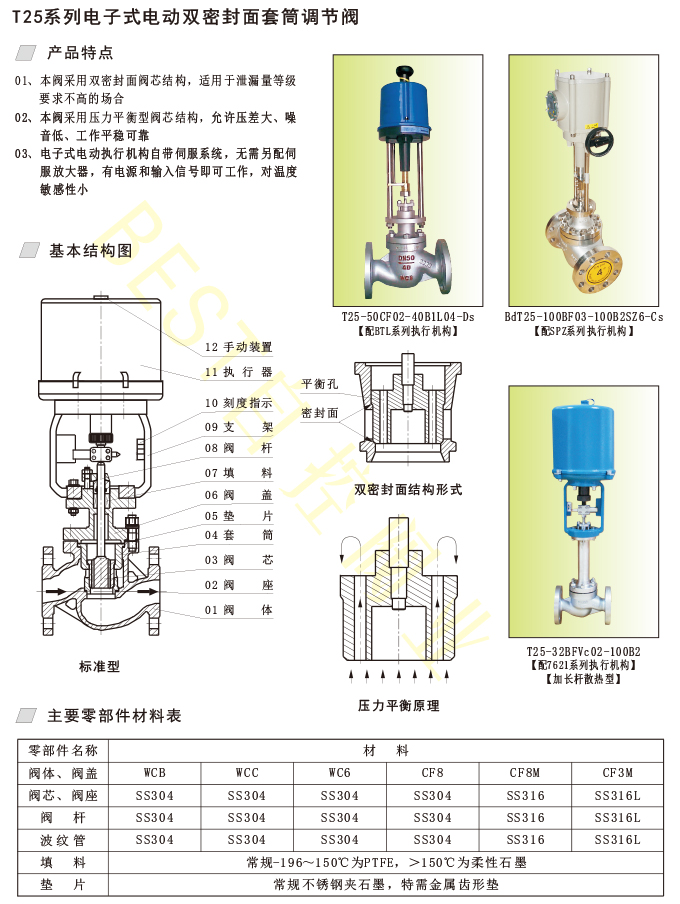 01、本阀采用双密封面阀芯结构,适用于泄漏量要求不高的场合