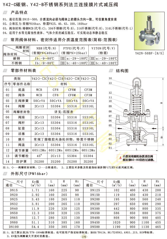 Y42-C碳钢、Y42-B不锈钢系列法兰连接膜片式减压阀