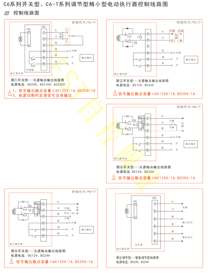 C6系列开关型、C6-T系列调节型精小型电动执行器控制线路图