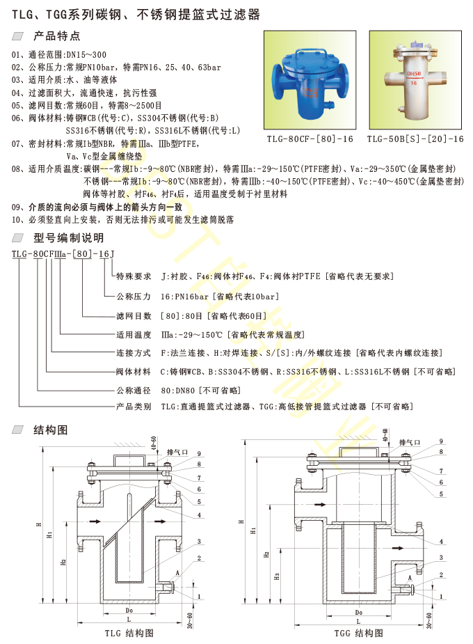 TLG、TGG系列碳钢、不锈钢提篮式过滤器