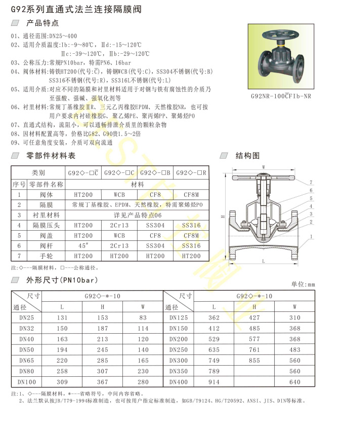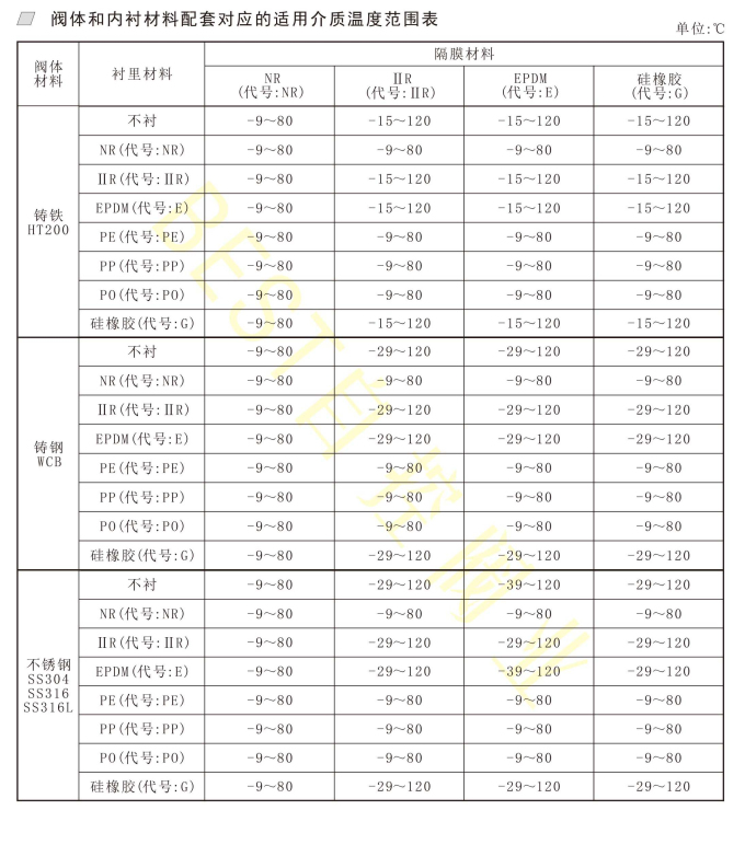 06、衬里材料:常规丁基橡胶ⅡR、三元乙丙橡胶EPDM、天然橡胶NR,也可按用户要求内衬硅橡胶