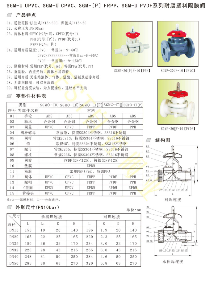 SGM-U UPVC、SGM-U CPVC、SGM-[P] FRPP、SGM-U PVDF系列耐腐塑料隔膜阀