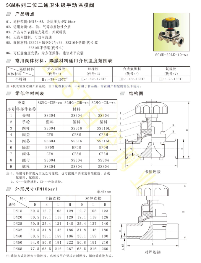 05、阀体材料:SS304不锈钢(代号:B),SS316不锈钢(代号:R),SS316L不锈钢(代号:L)