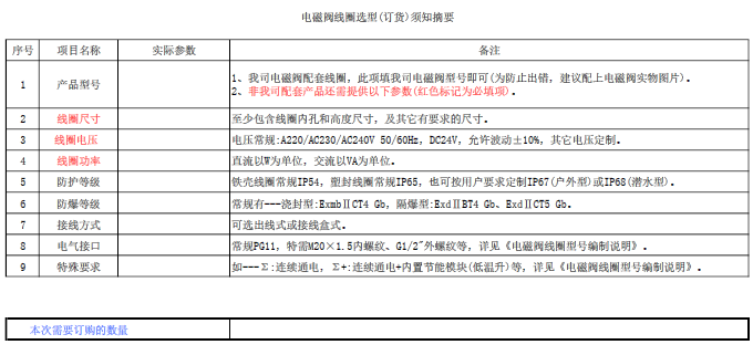 电磁阀线圈选型(订货)须知摘要