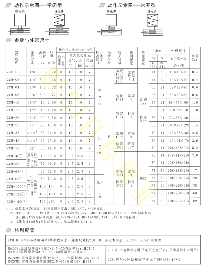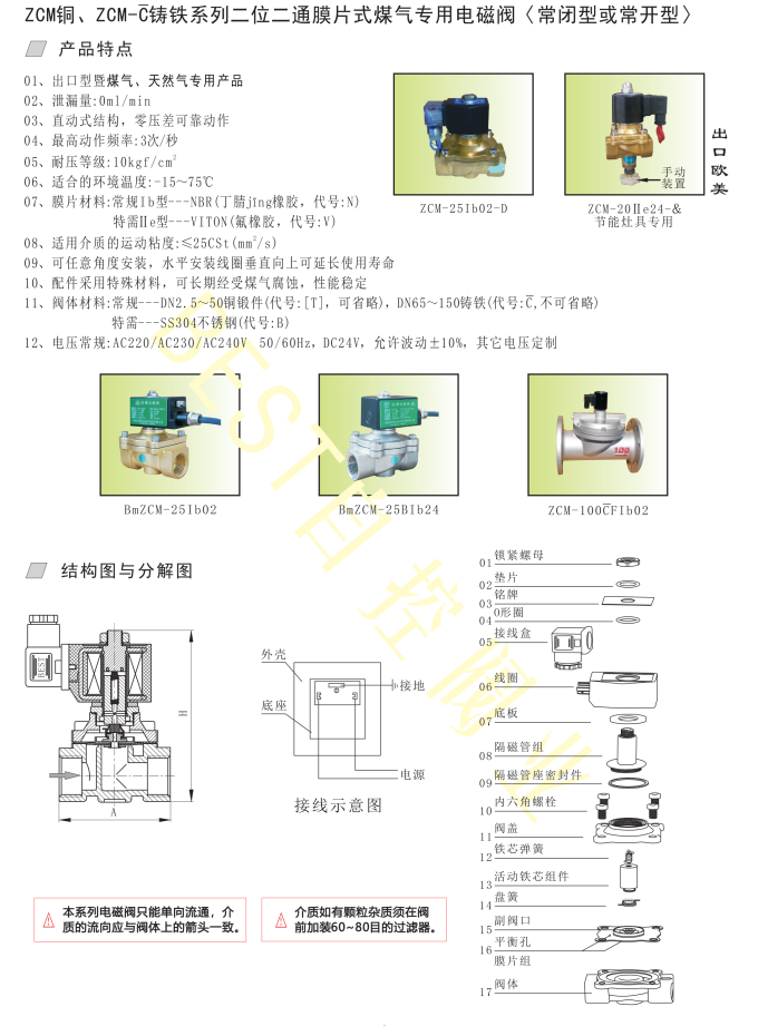 ZCM铜、ZCM-C铸铁系列二位二通膜片式煤气专用电磁阀〈常闭型或常开型〉