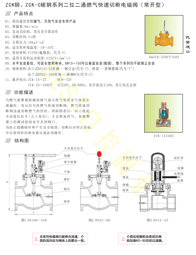 ZCK铜、ZCK-C碳钢系列二位二通燃气快速切断电磁阀〈常开型〉