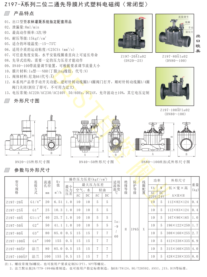 Z197-A系列二位二通先导膜片式塑料电磁阀〈常闭型〉