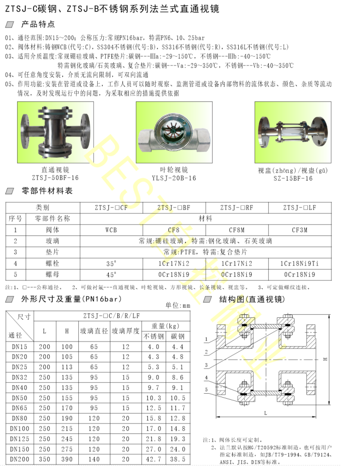 ZTSJ-C碳钢、ZTSJ-B不锈钢系列法兰式直通视镜