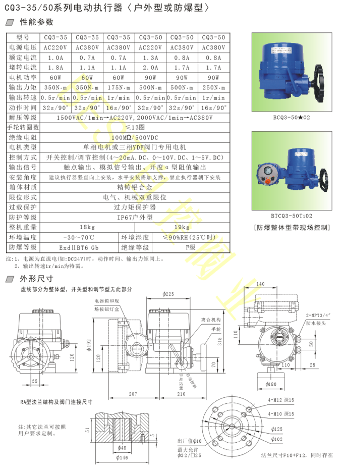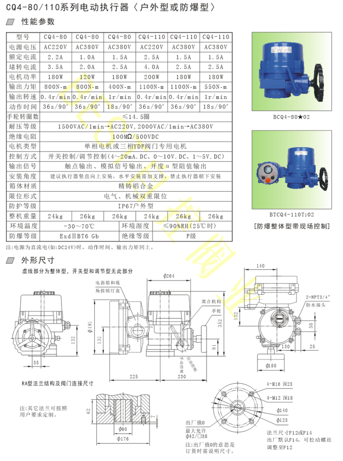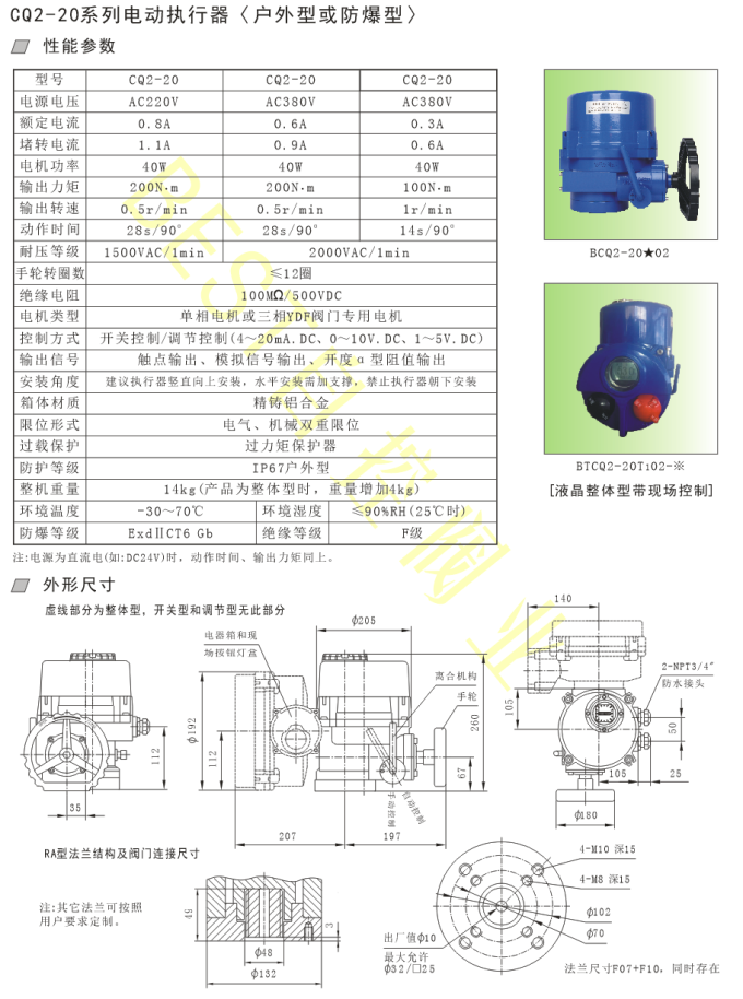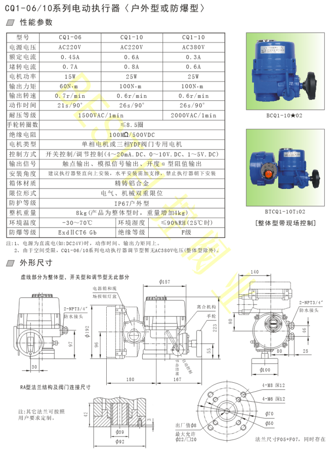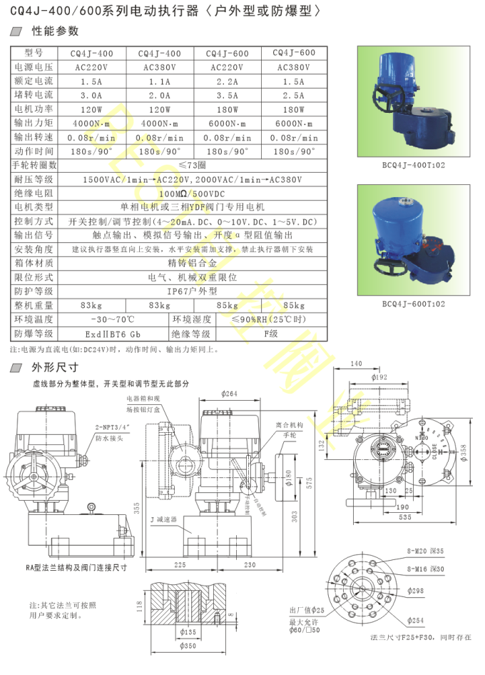 机构、户外型等特点,弥补了BST、CG系列执行器的不足,扩大了应用范围。