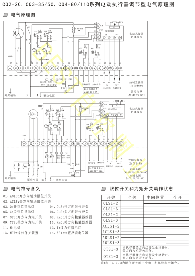 11、限位开关:可精确定位阀门位置,辅助开关可提供触点信号