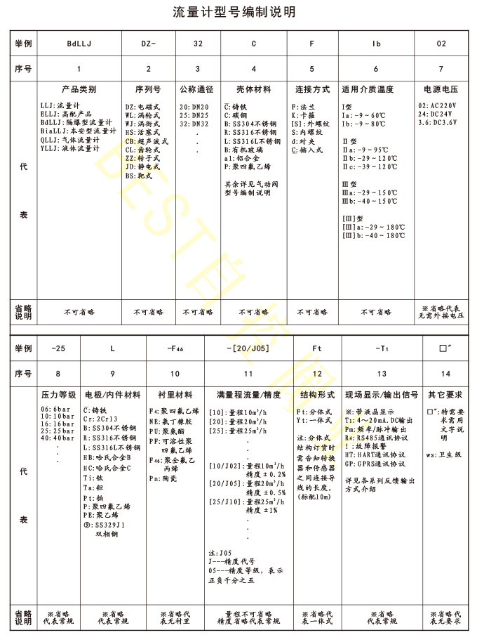 流量计型号编制说明