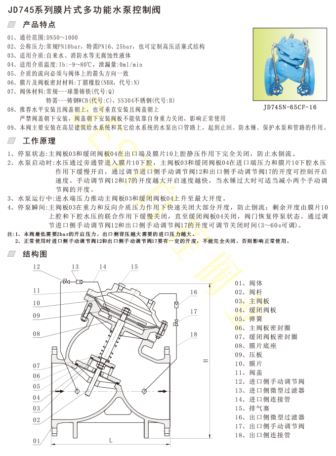 09、本阀主要安装在高层建筑给水系统和其它给水系统的水泵出口管路上,起到止回、防水锤、保护水泵和 管路的作用。