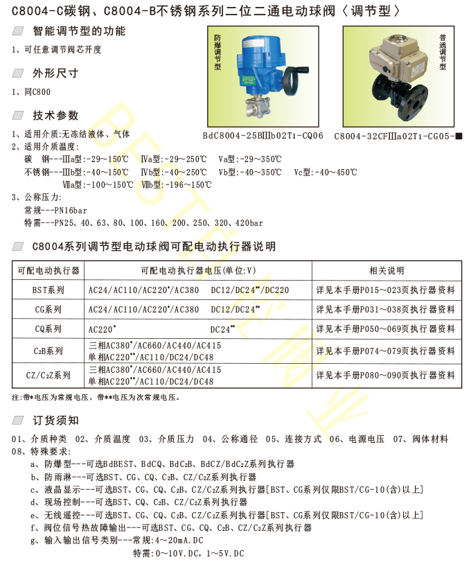 a、防爆型---可选BdBEST、BdCQ、BdC2B、BdCZ/BdC2Z系列执行器
