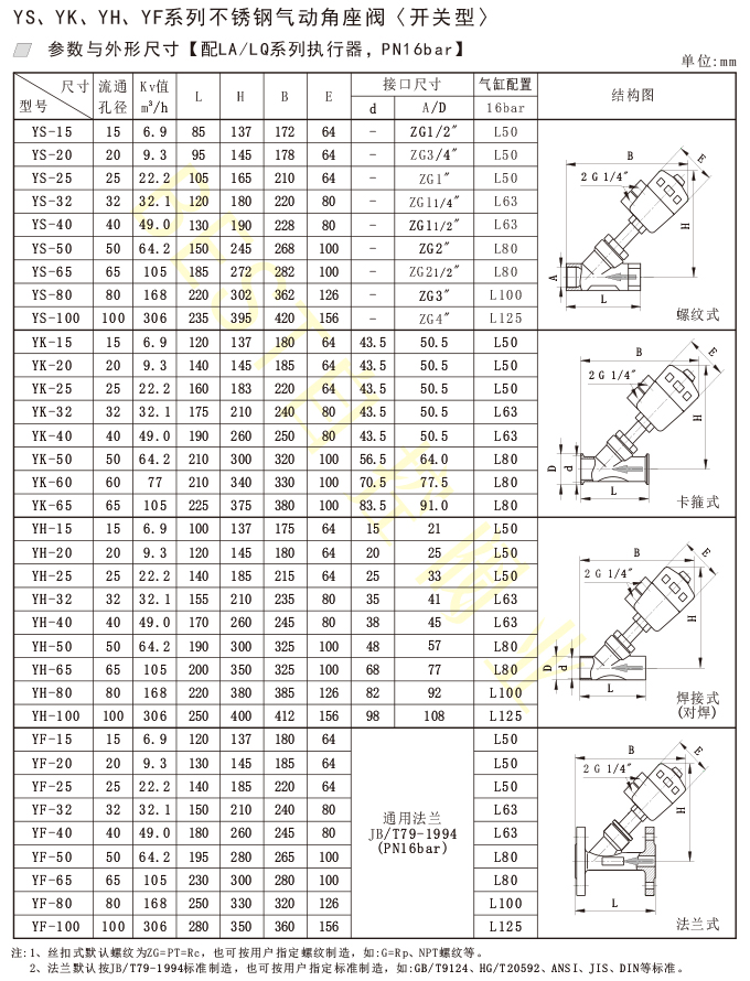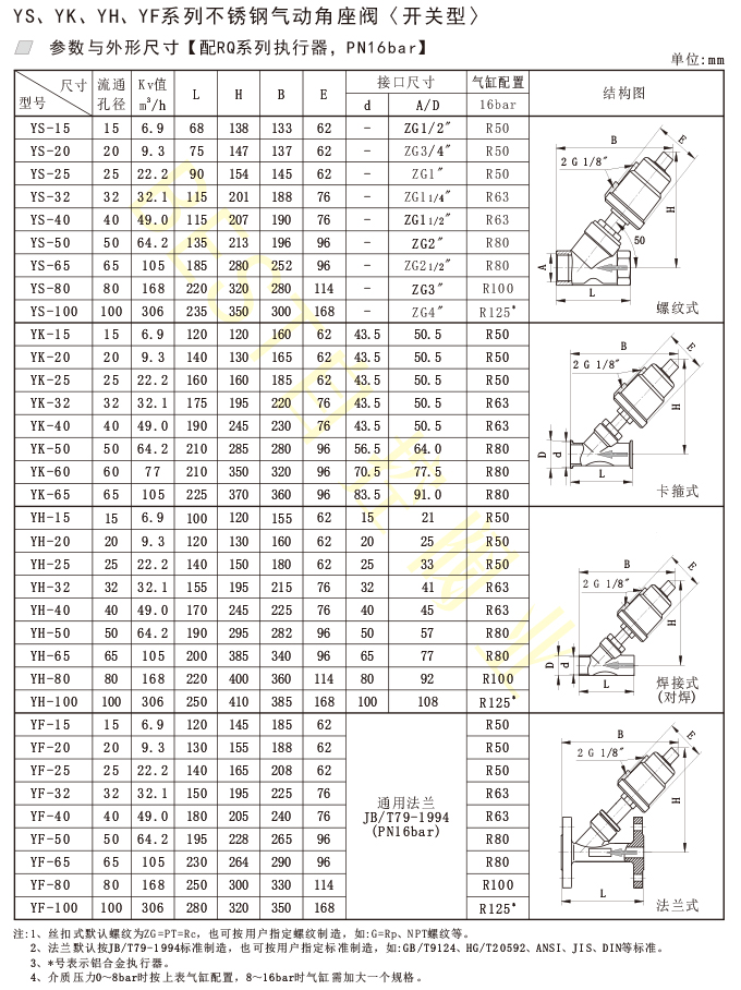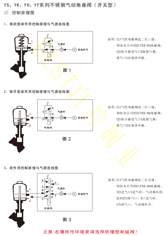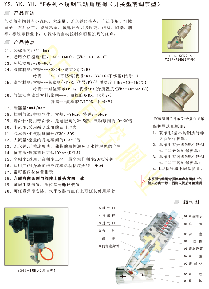 YS、YK、YH、YF系列不锈钢气动角座阀〈开关型或调节型〉