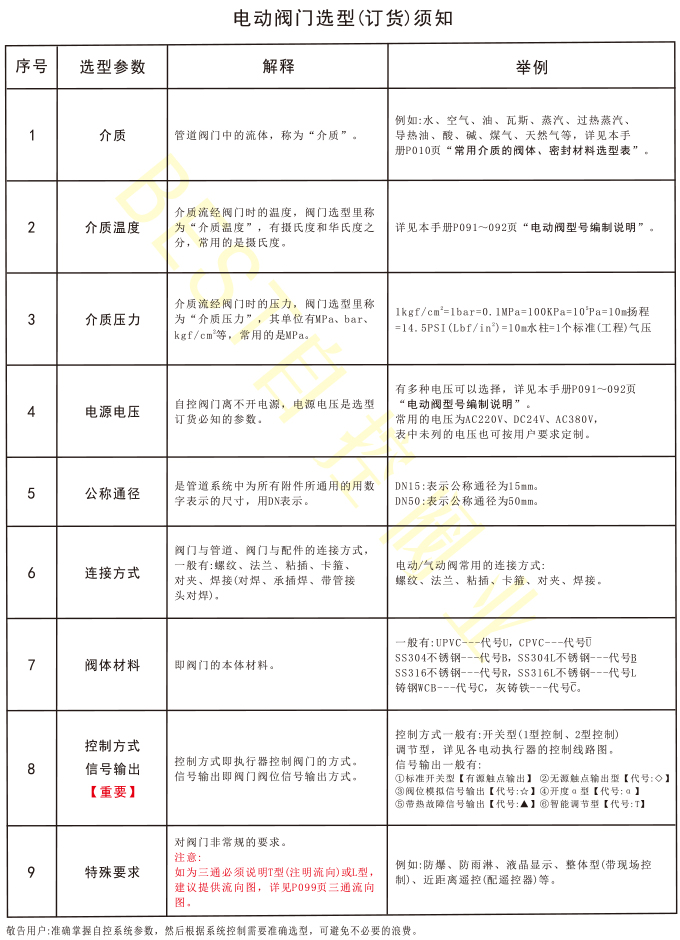 电动阀选型(订货)须知