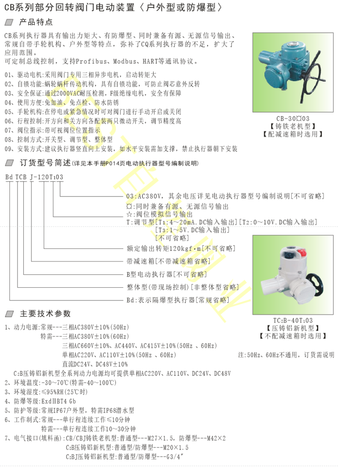 CB系列部分回转阀门电动装置〈户外型或防爆型〉