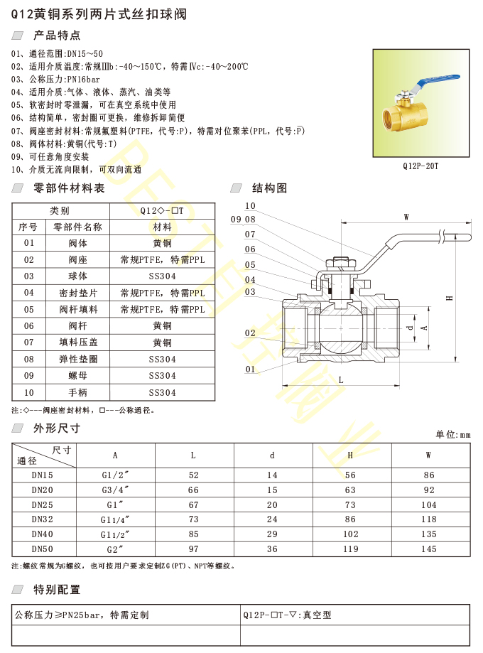 07、阀座密封材料:常规氟塑料(PTFE,代号:P),特需对位聚苯(PPL,代号:P)