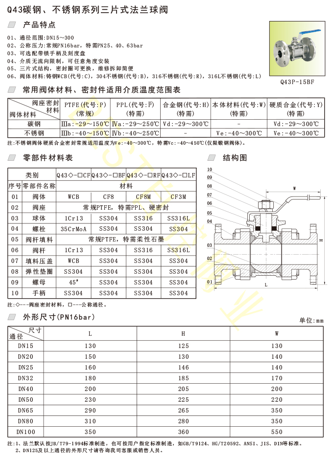 02、公称压力:常规PN16bar,特需PN25、40、63bar