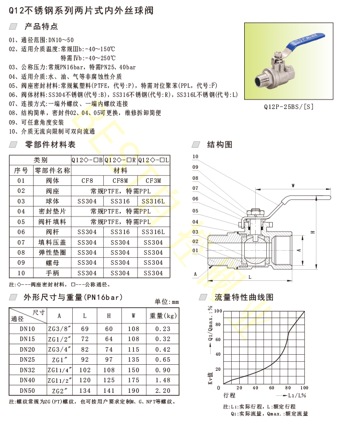 01、通径范围:DN10~50