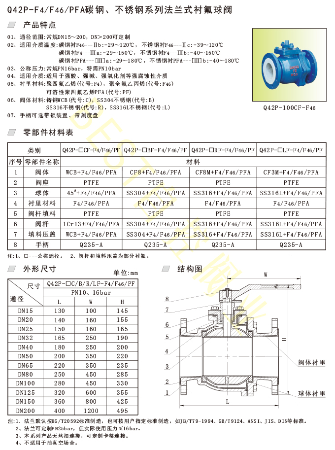 02、适用介质温度:碳钢衬F46---Ⅱb:-29~120℃,不锈钢衬F46---Ⅱc:-39~120℃