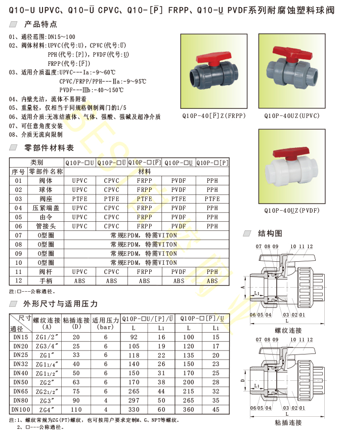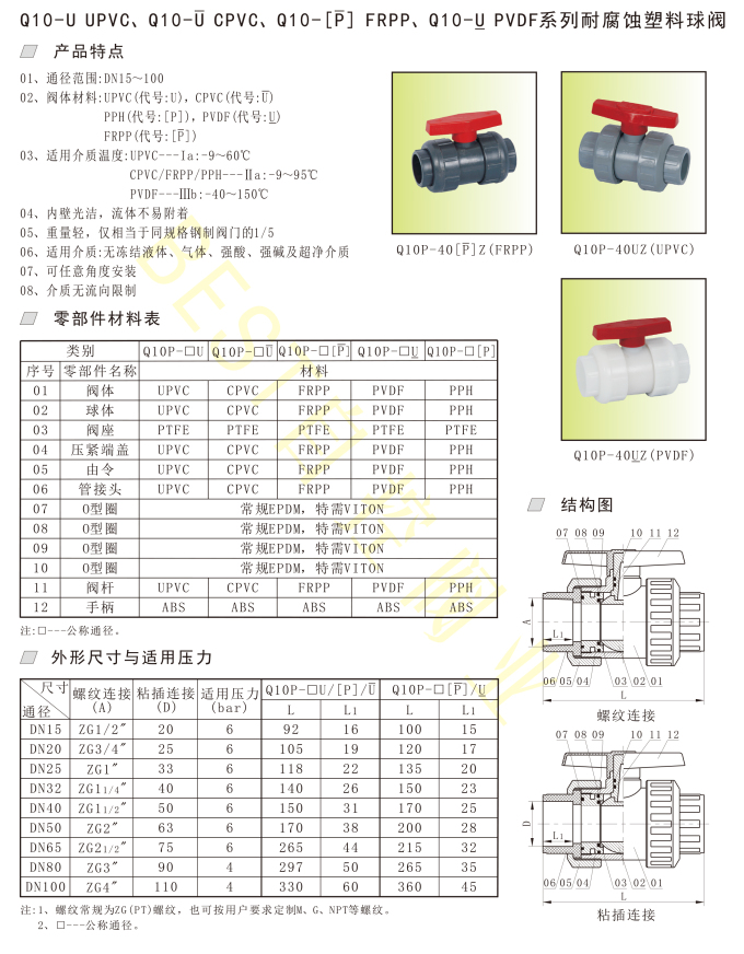 Q10-U UPVC、Q10-U CPVC、Q10-[P]FRPP、Q10-U PVDF系列耐腐蚀塑料球阀