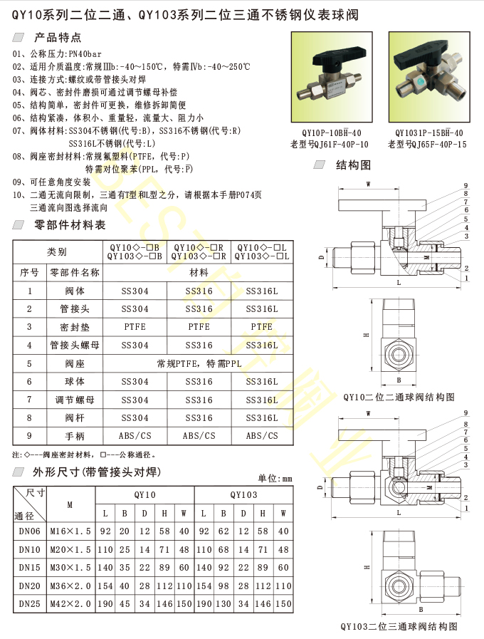 QY10系列二位二通、QY103系列二位三通不锈钢仪表球阀