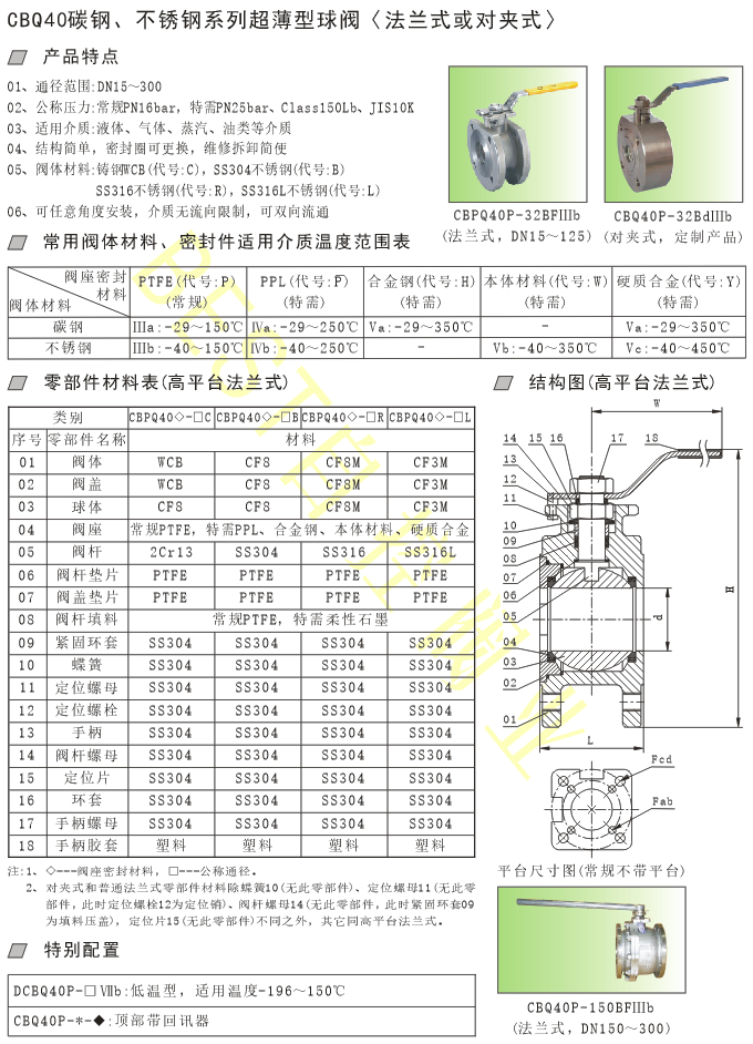 CBQ40碳钢、不锈钢系列超薄型球阀〈法兰式或对夹式〉