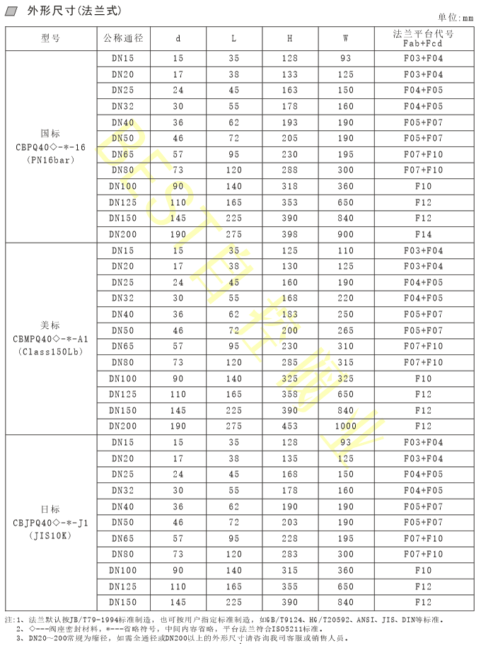 02、公称压力:常规PN16bar,特需PN25bar、Class150Lb、JIS10K