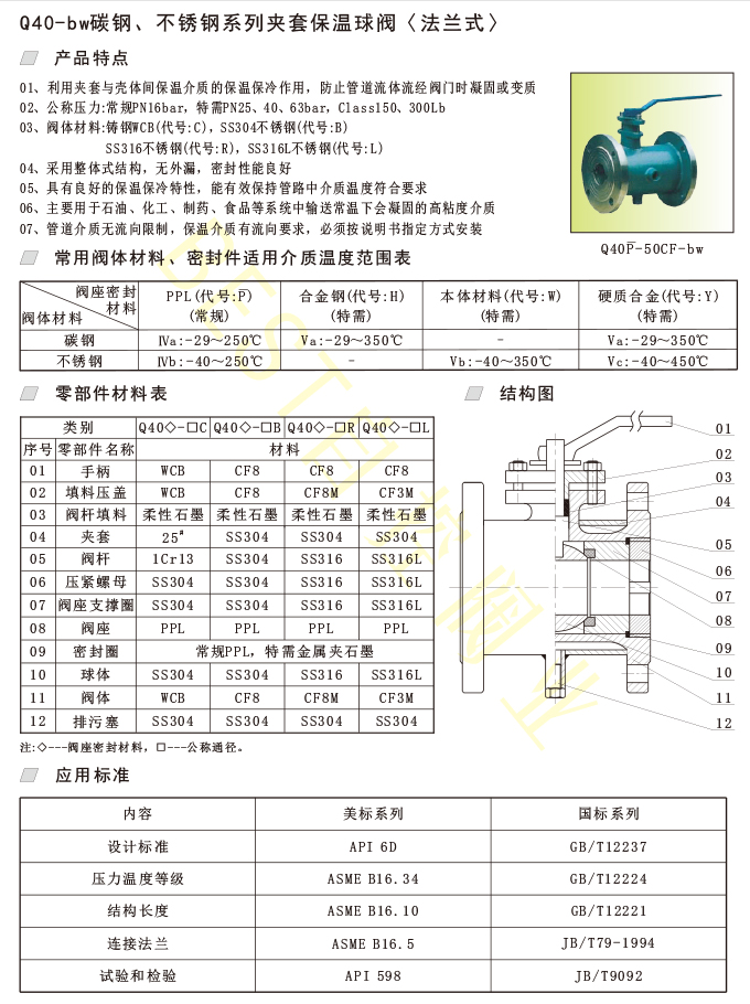 Q40-bw碳钢、不锈钢系列夹套保温球阀〈法兰式〉