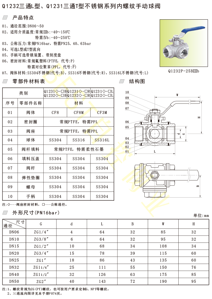 06、密封材料:常规氟塑料(PTFE,代号:P),特需对位聚苯(PPL,代号:P)