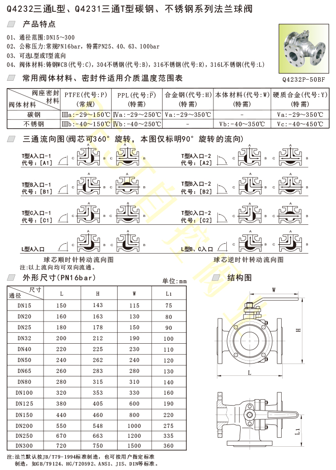 Q4232系列三通L型、Q4231系列三通T型碳钢、不锈钢法兰球阀