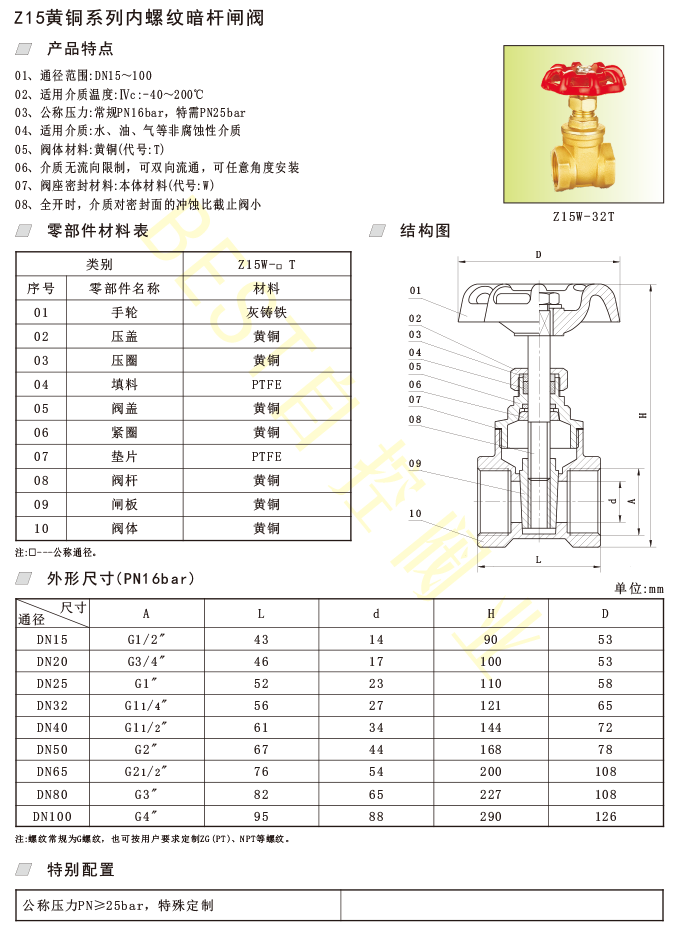 05、阀体材料:黄铜(代号:T)