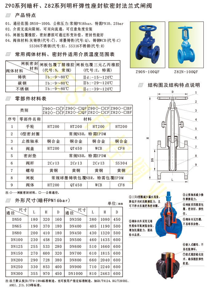 Z90系列暗杆、Z82系列明杆弹性座封软密封法兰式闸阀