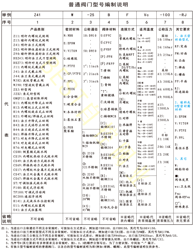 普通阀门型号编制说明