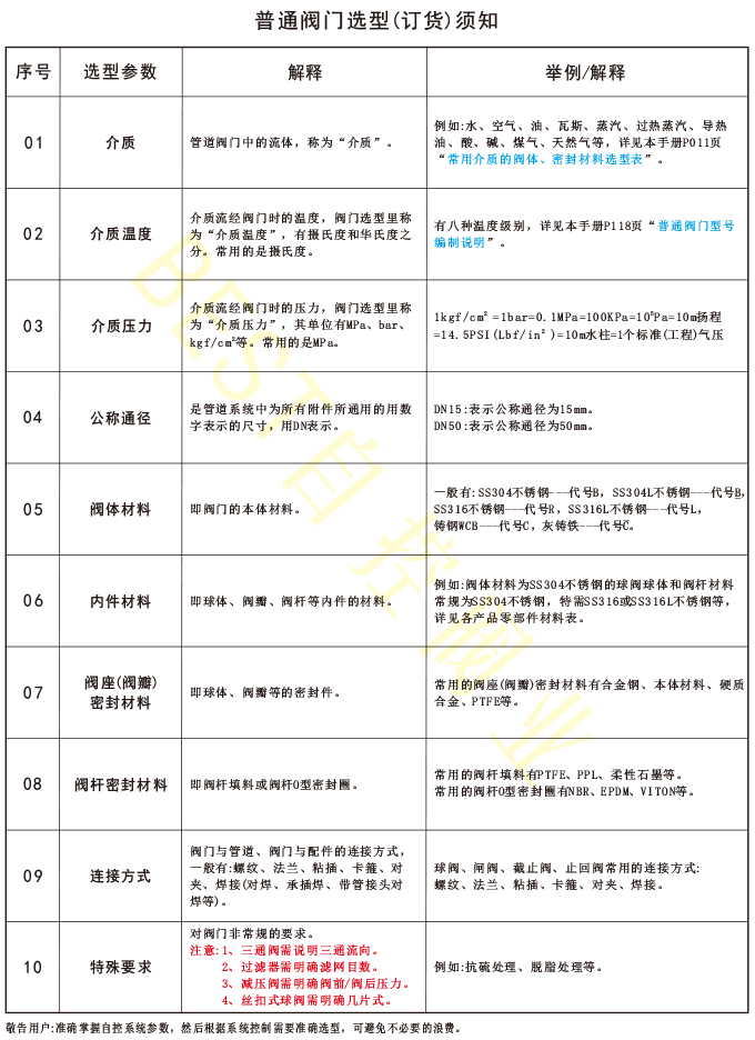 普通阀门选型(订货)须知