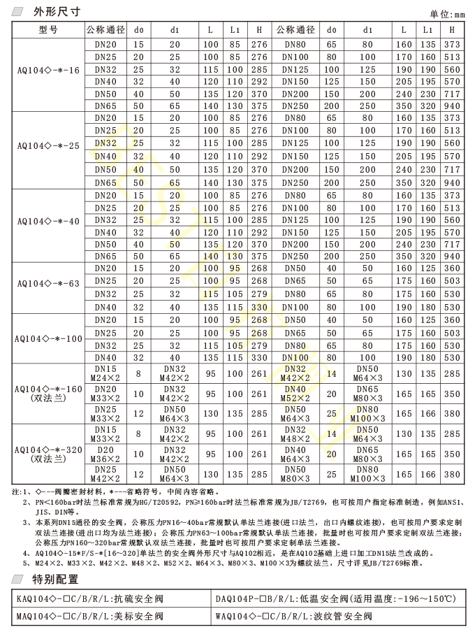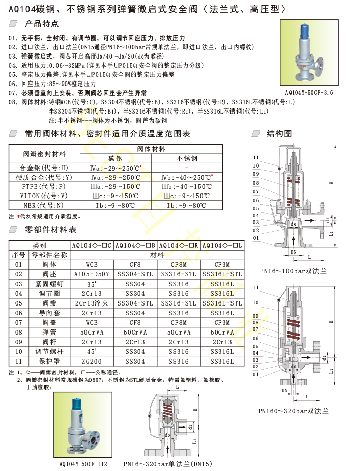 AQ104碳钢、不锈钢系列弹簧微启式安全阀〈法兰式、高压型〉