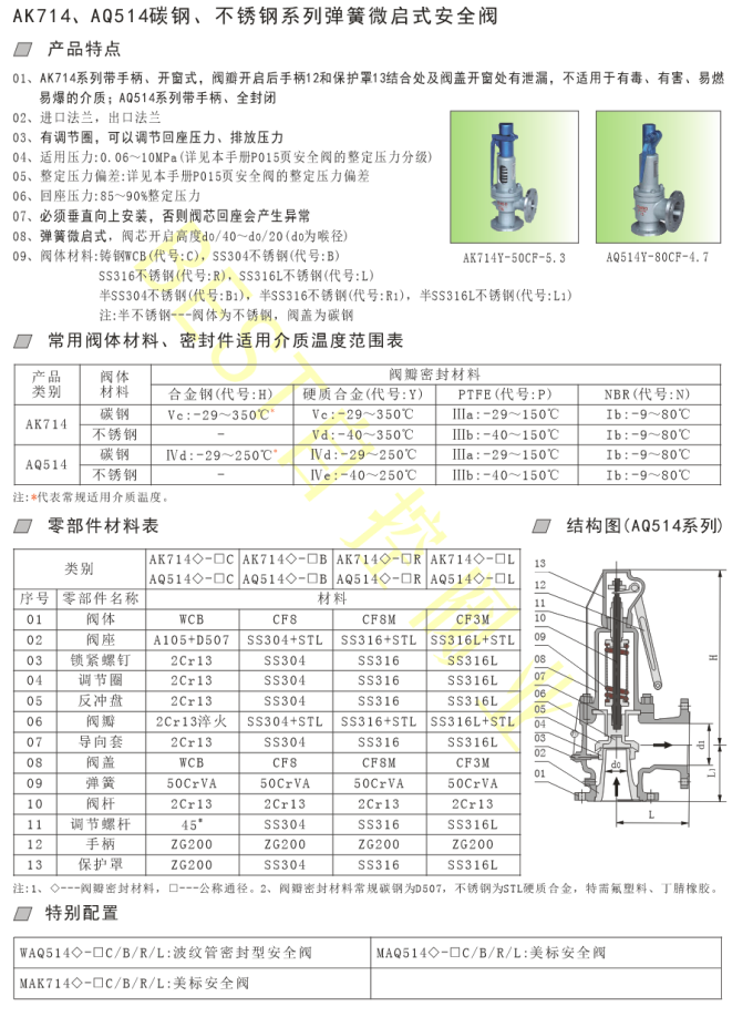 01、AK714系列带手柄、开窗式,阀瓣开启后手柄12和保护罩13结合处及阀盖开窗处有泄