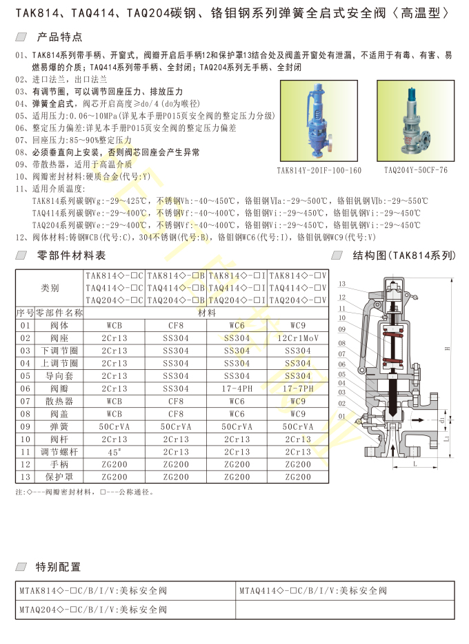 01、TAK814系列带手柄、开窗式,阀瓣开启后手柄12和保护罩13结合处及阀盖开窗处有泄