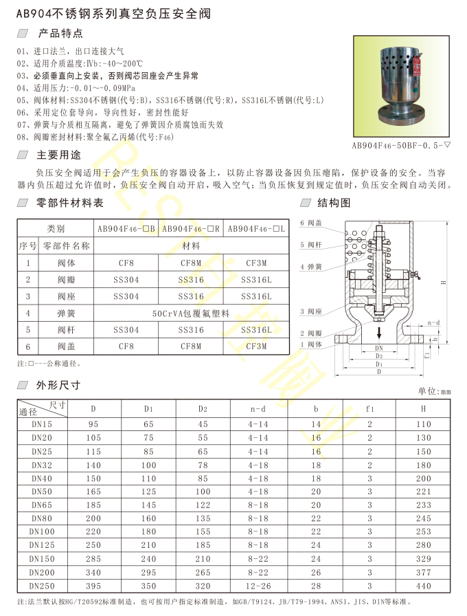 05、阀体材料:SS304不锈钢(代号:B),SS316不锈钢(代号:R),SS316L不锈钢(代号:L)