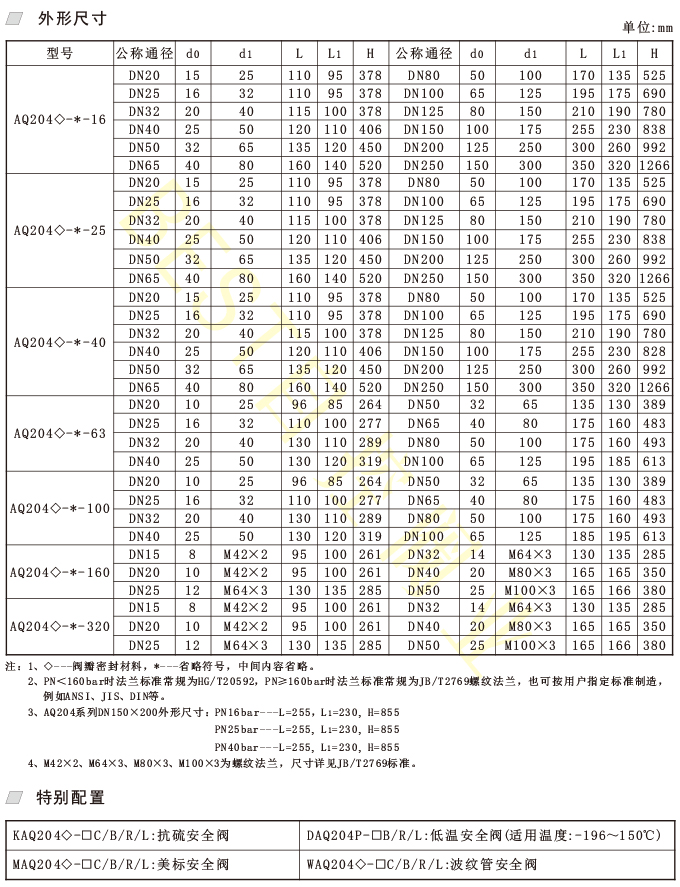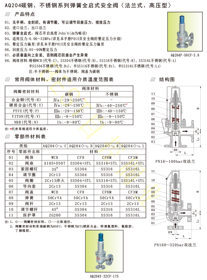 AQ204碳钢、不锈钢系列弹簧全启式安全阀〈法兰式、高压型〉