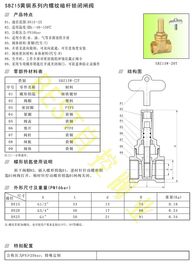 09、采用专用蝶形钥匙打开或关闭阀门,可防盗和防止误操作