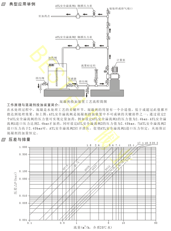 10、典型应用:安装于计量泵的正压排放管路上,防止虹吸现象的发生,消除由于投加点压力